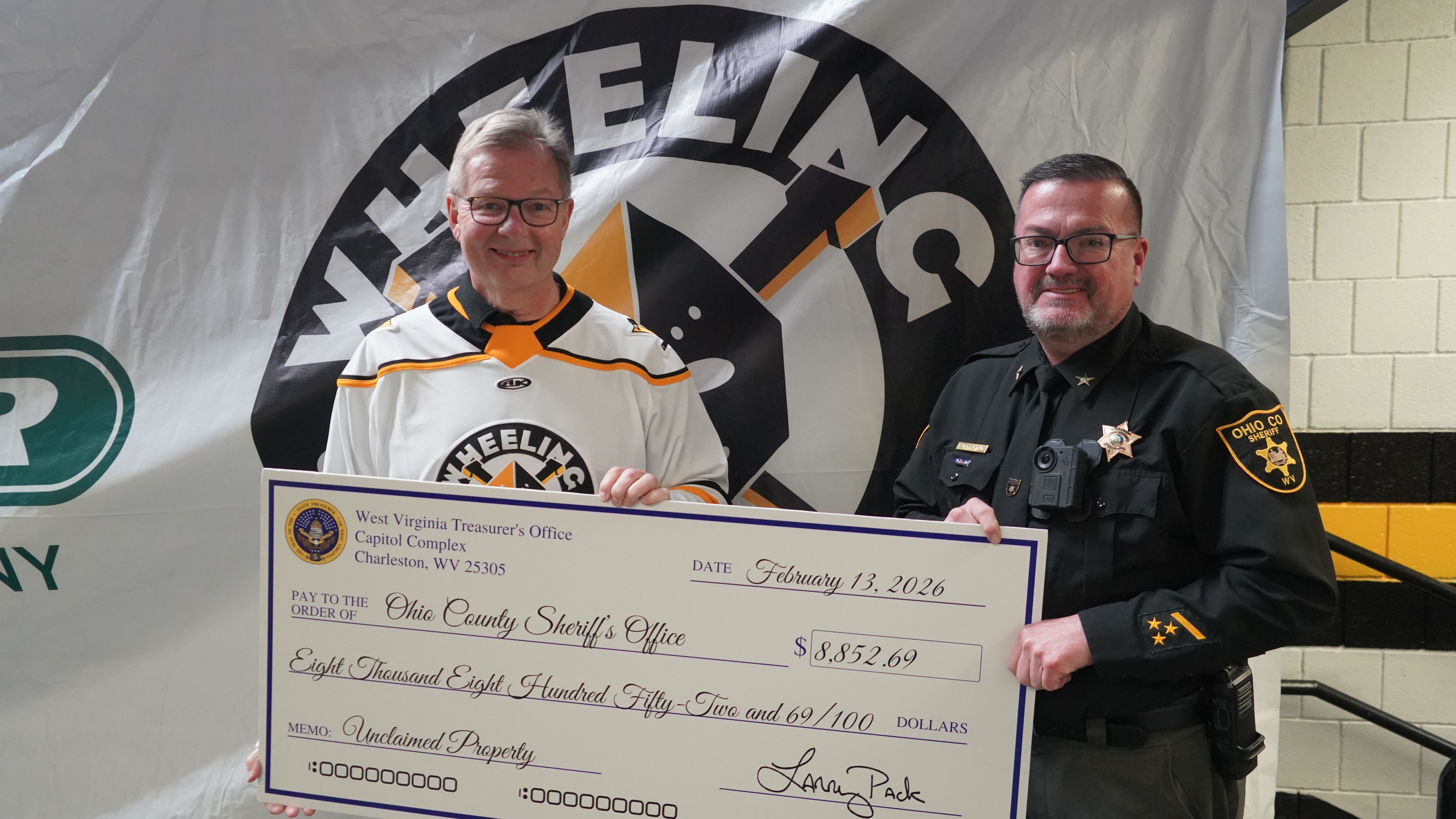 To cap the day, Treasurer Pack joined Ohio County Sheriff’s Deputy Nelson Croft at the Wheeling Nailers hockey game to present an unclaimed property check valued at $8,852.69. These funds come from various sources including stale checks.